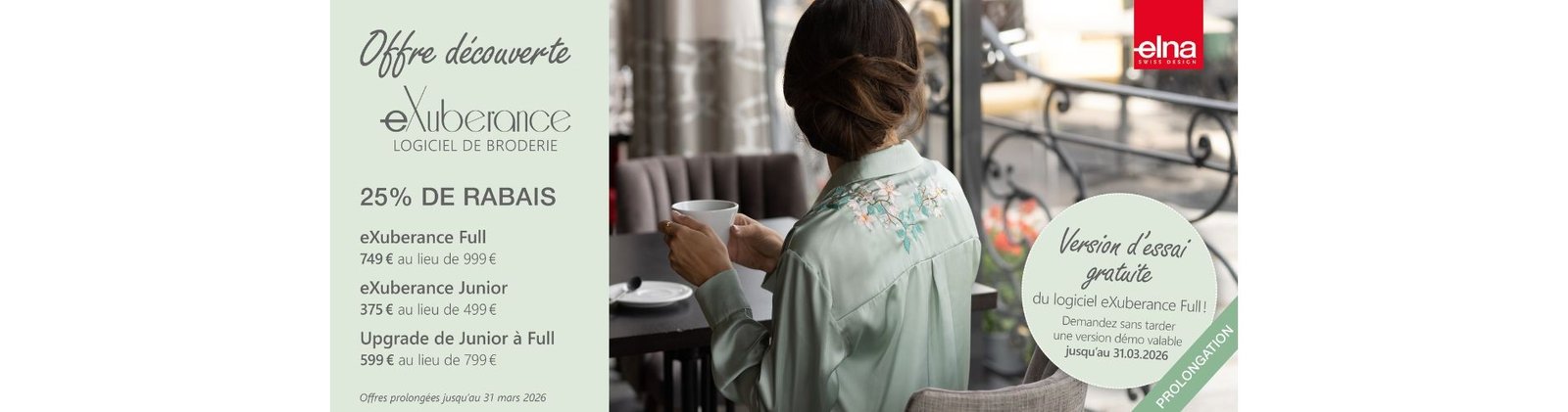 Grâce au logiciel de broderie elna eXuberance, vous pouvez créer vos propres motifs de broderie. Passez de la version junior à la version Full avec cette extension.